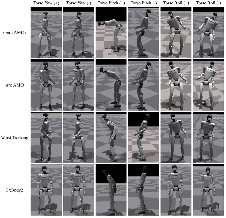 在模拟和真实机器人实验中,AMO 数据集支持的系统在全身控制任务中表现出色,与现有方法相比,工作空间扩大了 50% ,显著提升了稳定性和适应性。