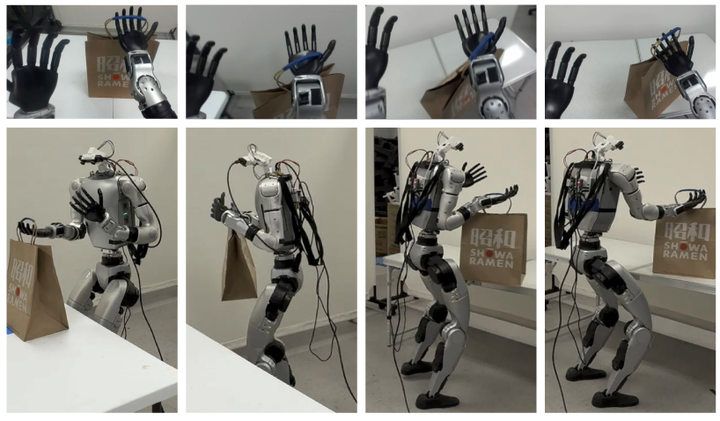4、自主任务执行 :通过模仿学习,机器人可以自主完成复杂的全身控制任务,例如在不同高度的平台上进行物体的抓取和放置