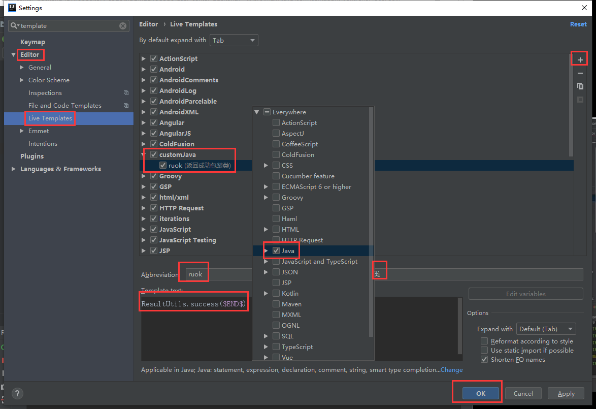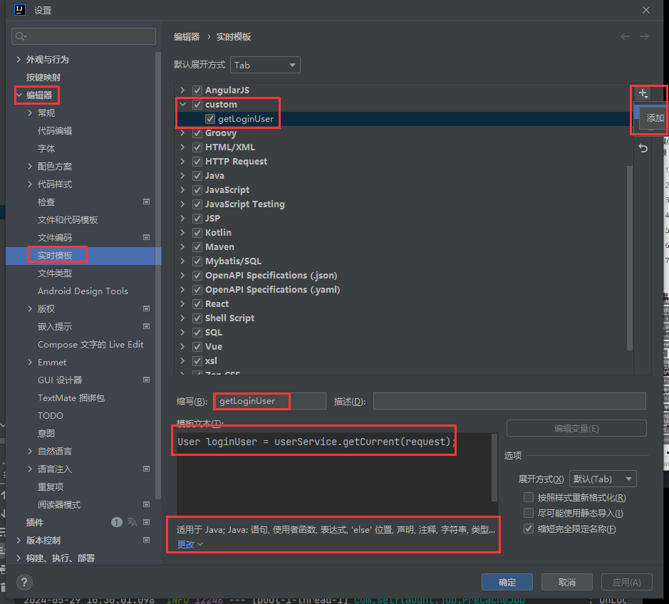 配置实时模版(使用快捷键)