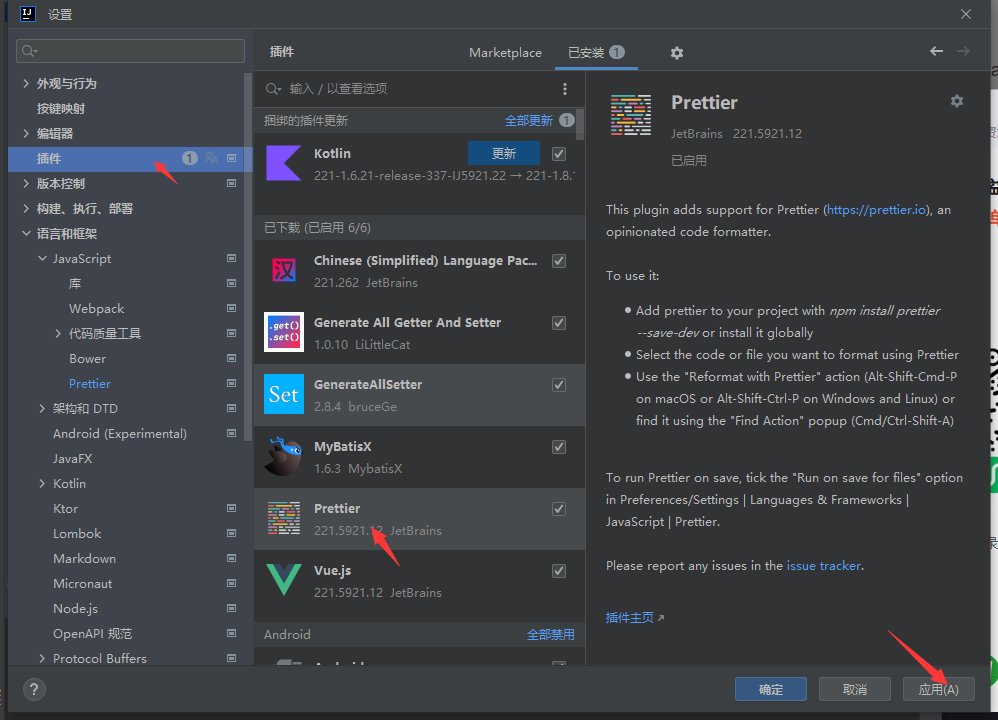格式化 Prettier (Ctrl + Alt + L)