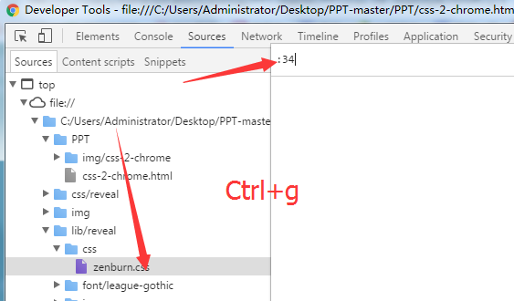 用於文件中查看某一行代碼,如下图":34"跳转到第34行。