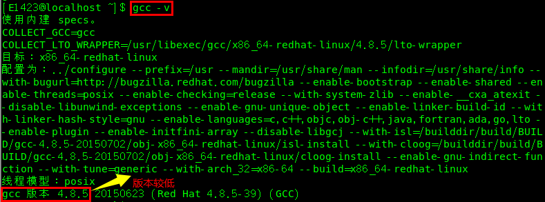 3.查看gcc版本信息:gcc-v