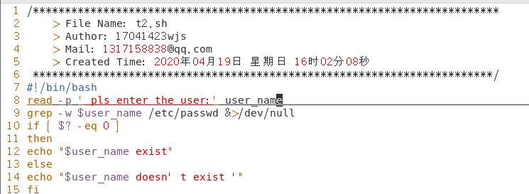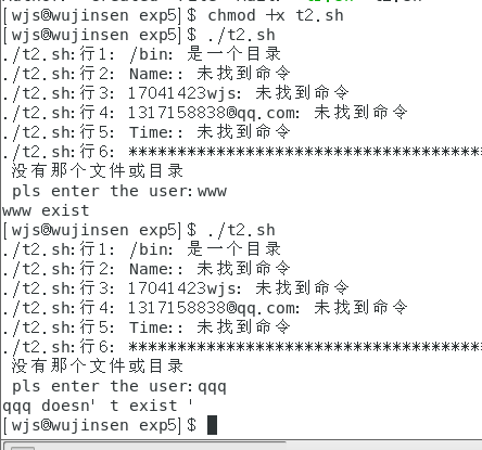 2.编写一脚本,判断输入用户名是否存在,输出结果只能是存在该用户或者不存在该用户,不能有其他数据输出。