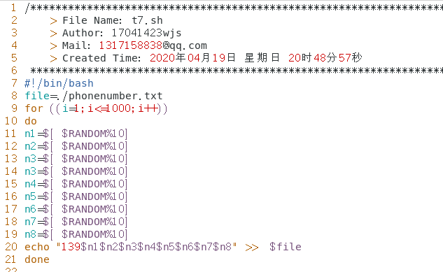 7.编写脚本,生成一个phonenumber.txt文件,文件内容为随机产生以139开头的手机号1000个,每个手机号占一行。