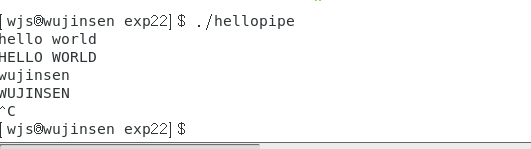 现在两个终端都处于阻塞状态,我们在运行 pipe_send 的终端输入数据,然后我们就可以在运行pipe_recv 的终端看到相应的输出: