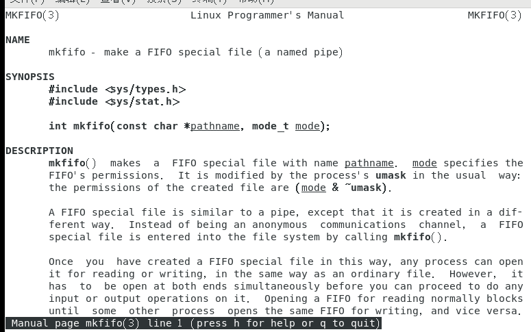 1、文件属性前面标注的文件类型是 p ,代表管道