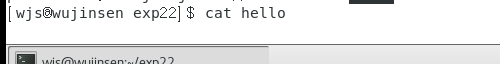 b)使用 cat 命令打印 hello 文件内容可以看到cat已经被堵塞了,开启另一个终端