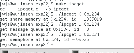 4. 编写两个程序分别通过指定的键值创建IPC内核对象,以及获取该指定键值的IPC内核对象。