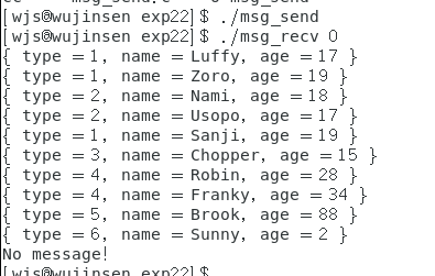 先运行 ./msg_send ,再运行 ./msg_recv 。