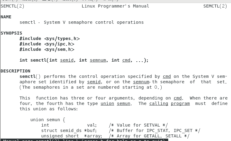 semid = semget((key_t)1000,1,0664|IPC_CREAT);