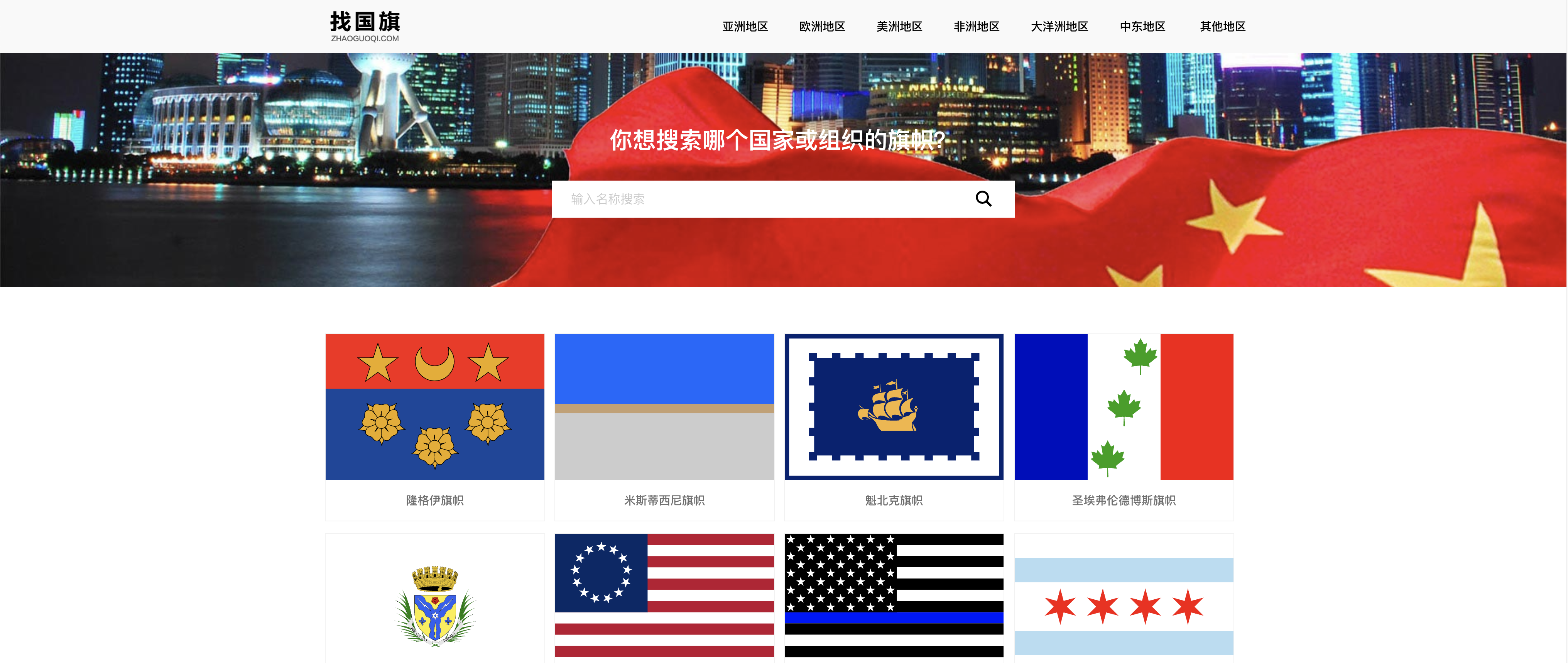 这个网站叫找国旗网,是seekflag的中文版,网站提供下载所有国家的国旗 SVG 和 PNG 大图,不需要注册,直接可以免费下载。