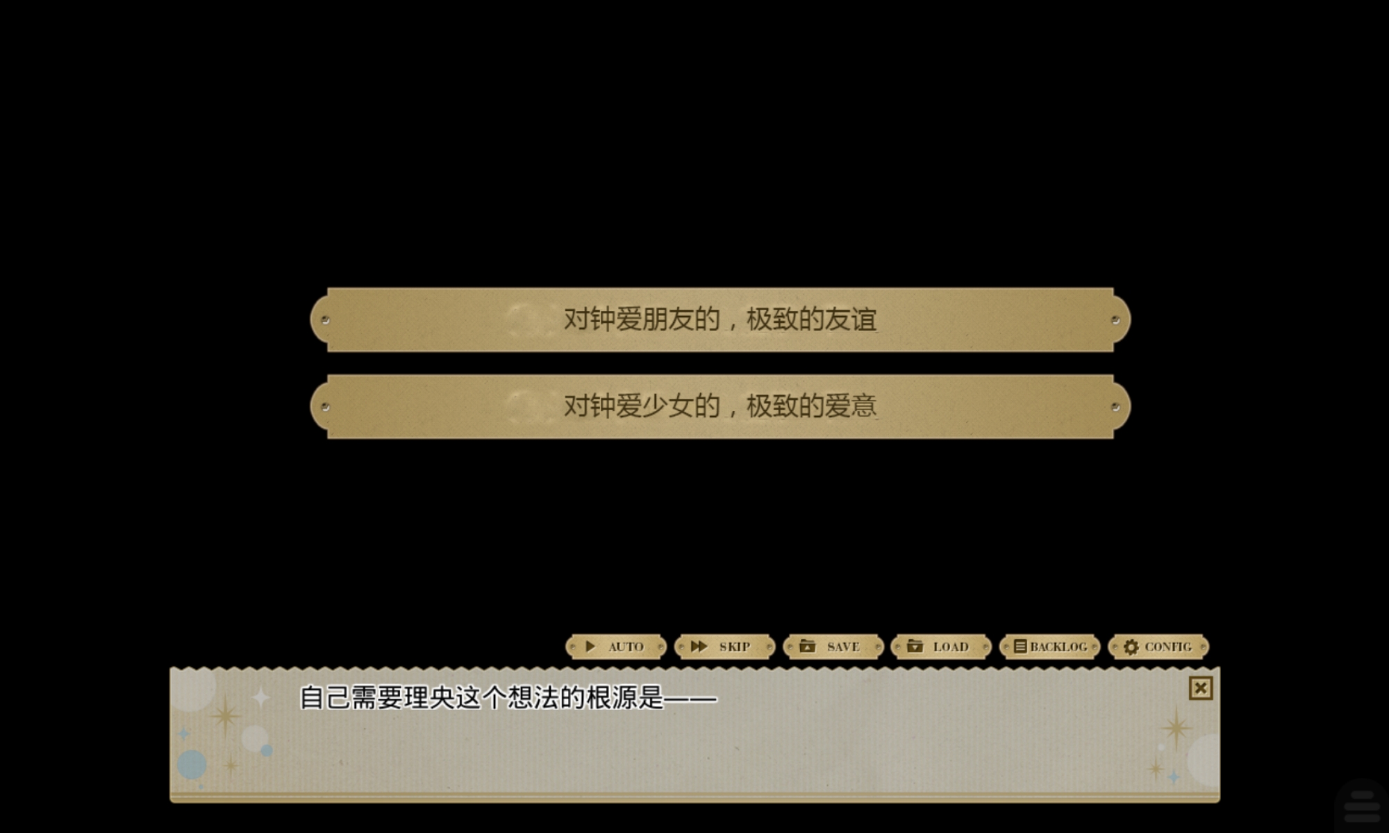 在我看来,打破第四面墙未必需要《ddlc》那样的meta元素,这个选项便毫无疑问打破了第四面墙,拷打着我的内心