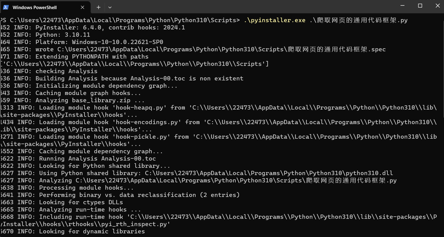 2、python生成exe文件.\pyinstaller.exe .\爬取网页的通用代码框架.py