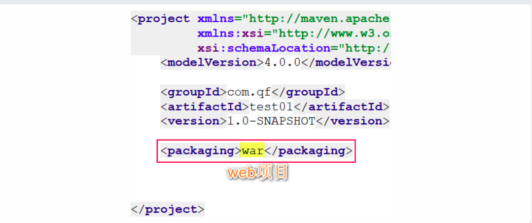 根据项目类型,在pom.xml中做出对应配置,添加配置:<packaging>war/jar</packaging>