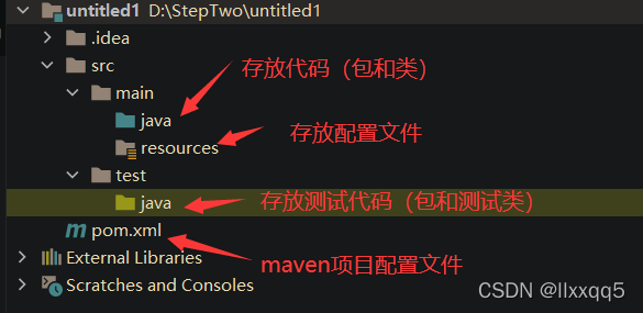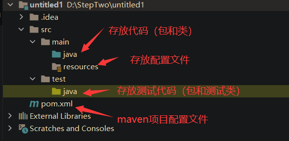 src/main/java 存放源代码,建包,放项目中代码(service,dao,User,....)
