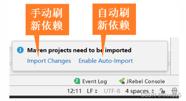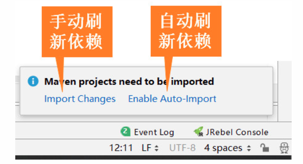 | 窗口右下角弹窗,刷新依赖,使新加的配置被maven加载 |