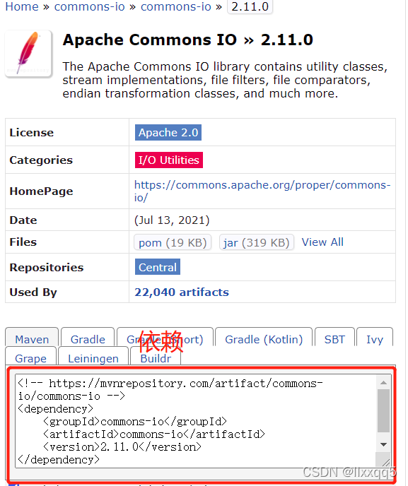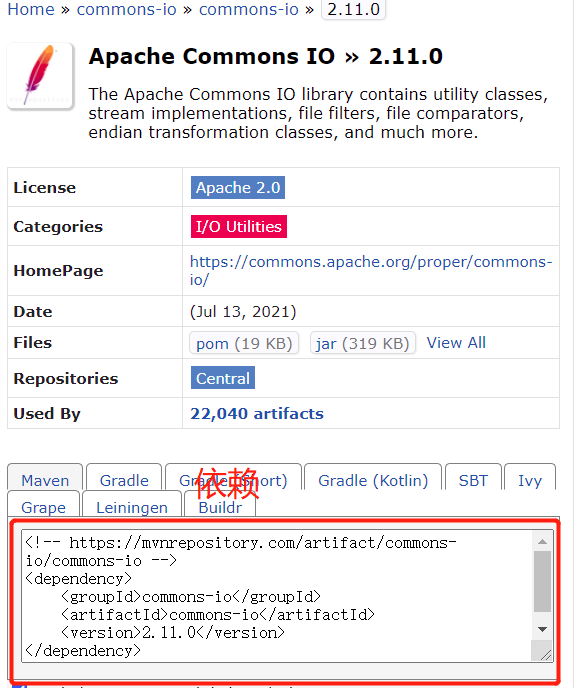 依赖查找服务:https://mvnrepository.com/ ,获得依赖的坐标,在maven项目中导入。