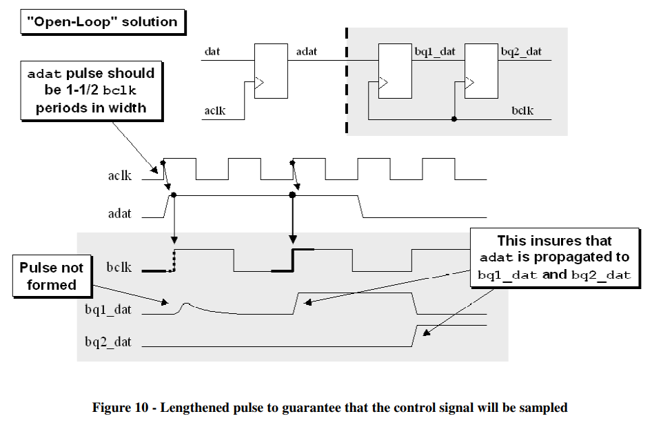 1.如果慢时钟是clk_slow,快时钟是clk_fast,那么从clk_slow打出的单bit信号宽度至少是clk_fast周期的1.5倍,否则认为是从快到慢;