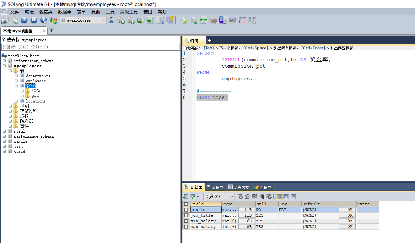 8.关键字 -ifnull 判断一个值是否为null,为null则返回你填入的参数,不为null则返回原值
