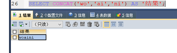 7.关键字 -concat 连接字符串,相当于Java中的字符拼接