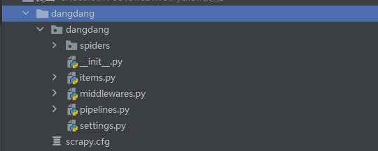scrapy startproject 项目名称 (这里命名为dangdang)