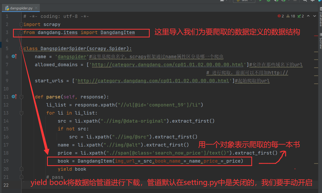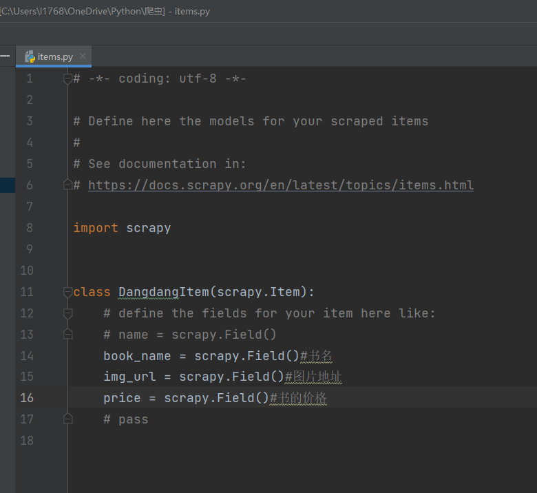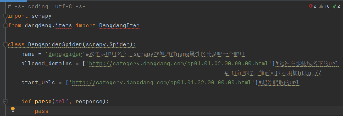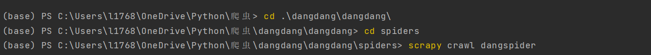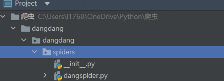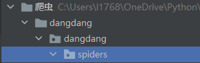 该目录下输入命令scrapy genspider 爬虫名称 爬取域名 (这里是dangspider)回车后会发现spiders下面多了一个dangspider.py的文件