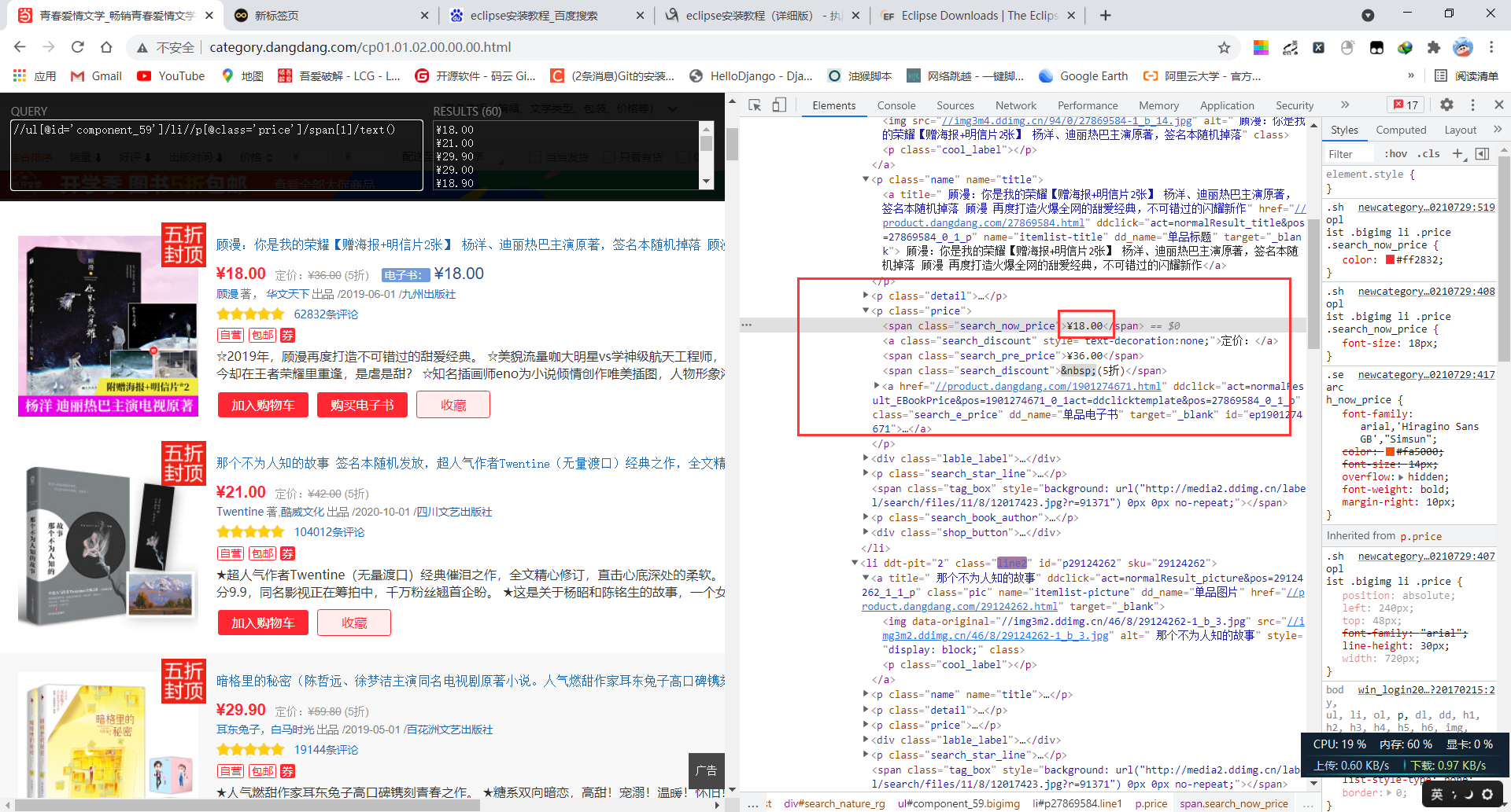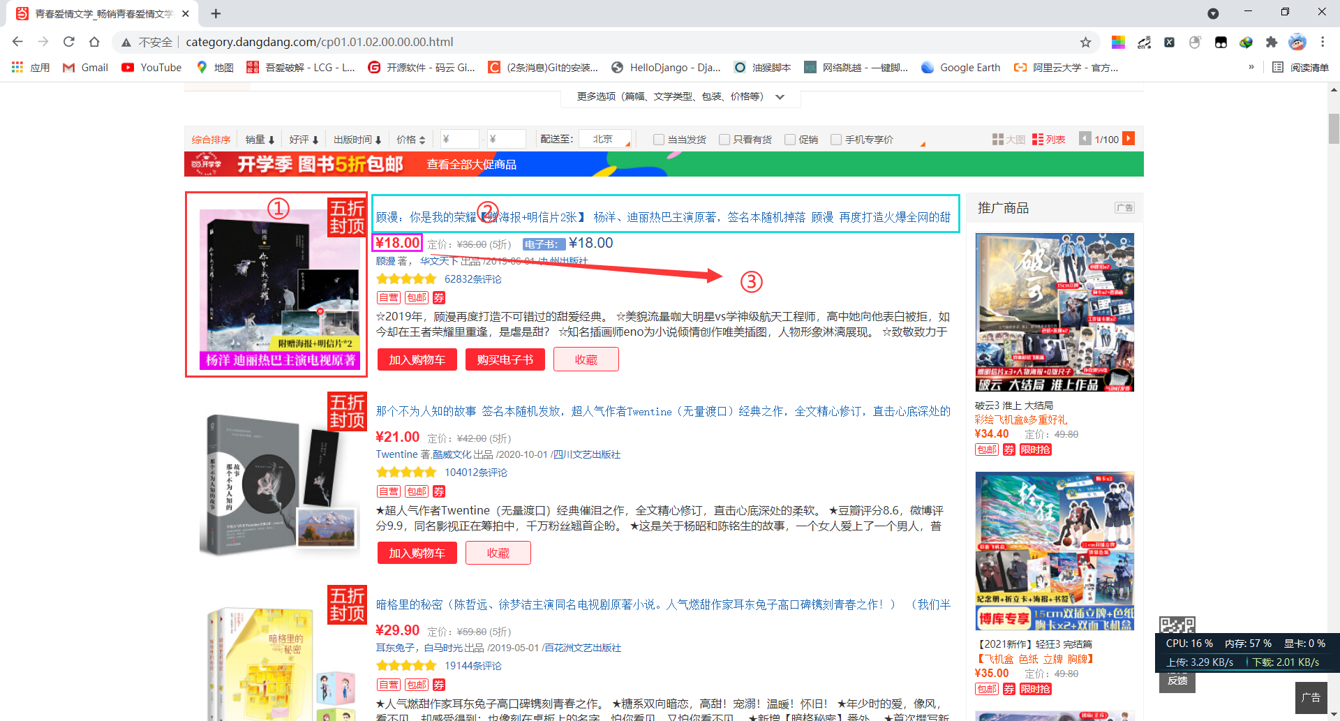 - 打开要爬取的当当的网址,对要爬取的内容进行分析