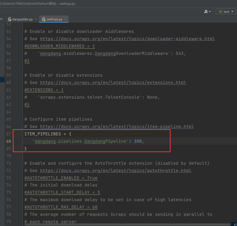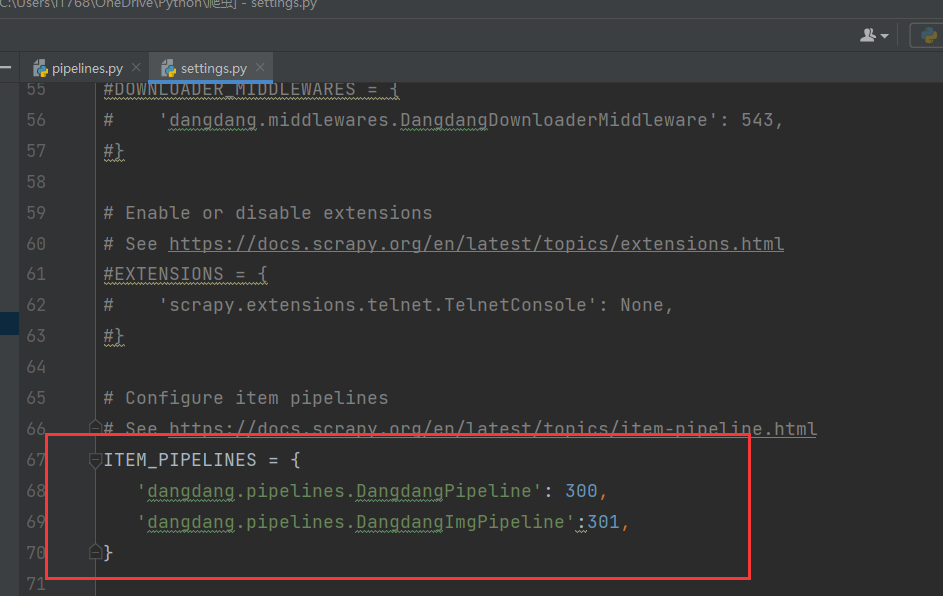 对于图片的下载的这条管道我们需要在setting.py文件中进行配置,并设置相应的管道优先级,优先级是数字越小优选级越大