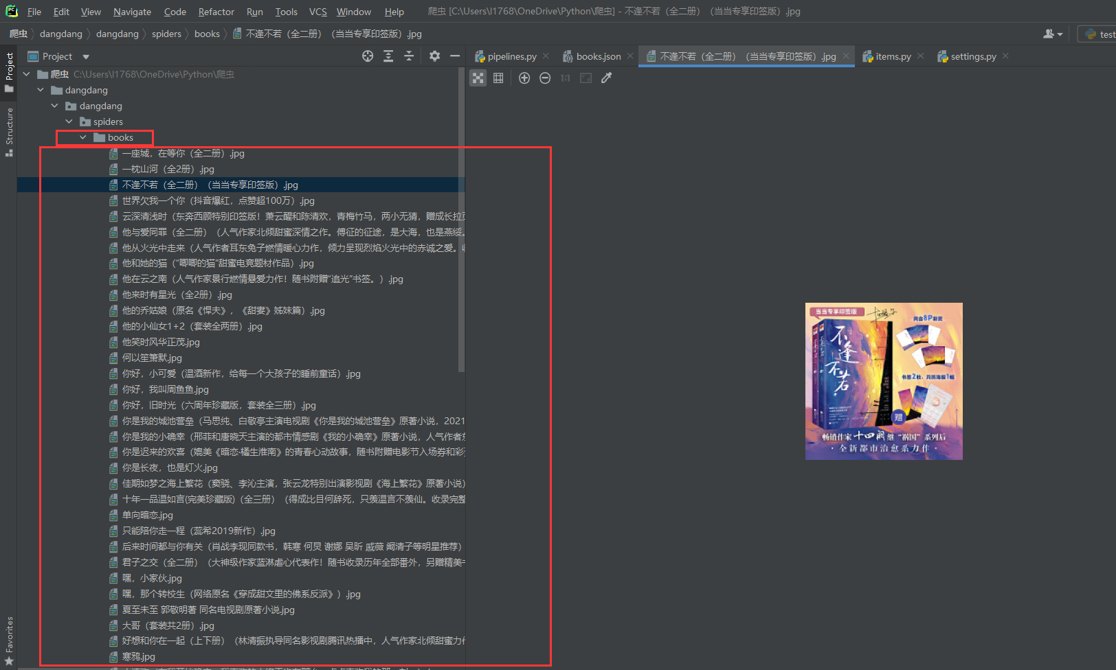 我们可以对书的图片进行下载,为此我们可以开辟另外一条管道专门用于图片的下载,图片保存到当前目录下的books文件夹下,为此我们创建books文件夹