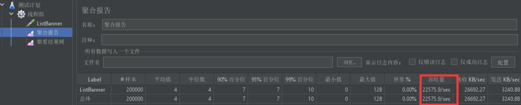 使用后,线程数:200,循环次数:1000,吞吐量:22575.9/s