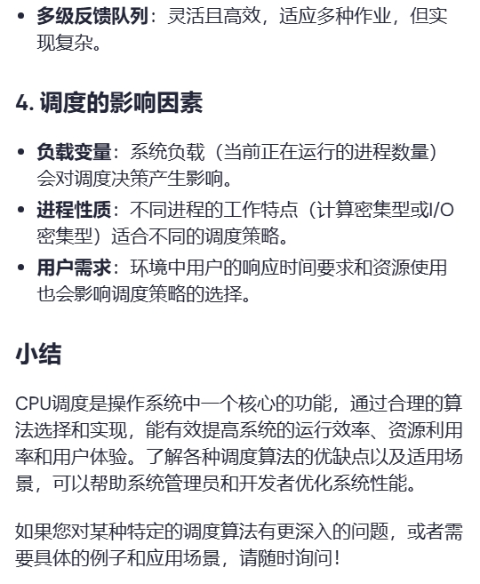 每种调度算法都有其优缺点,适用场景不同。一般来说: