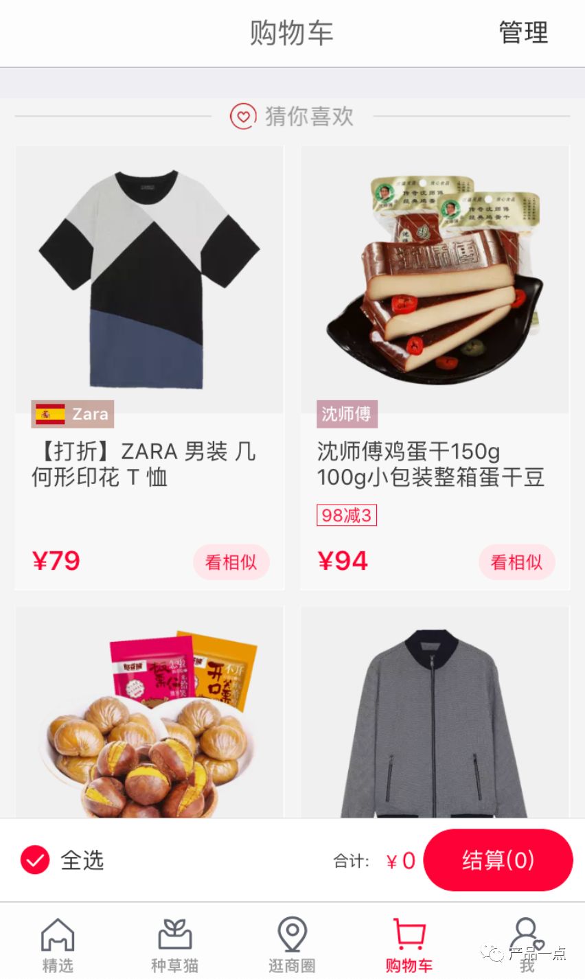 首页的推荐和购物车里的推荐商品看似形式一样,但是这两处的场景细分后会发现很不一样