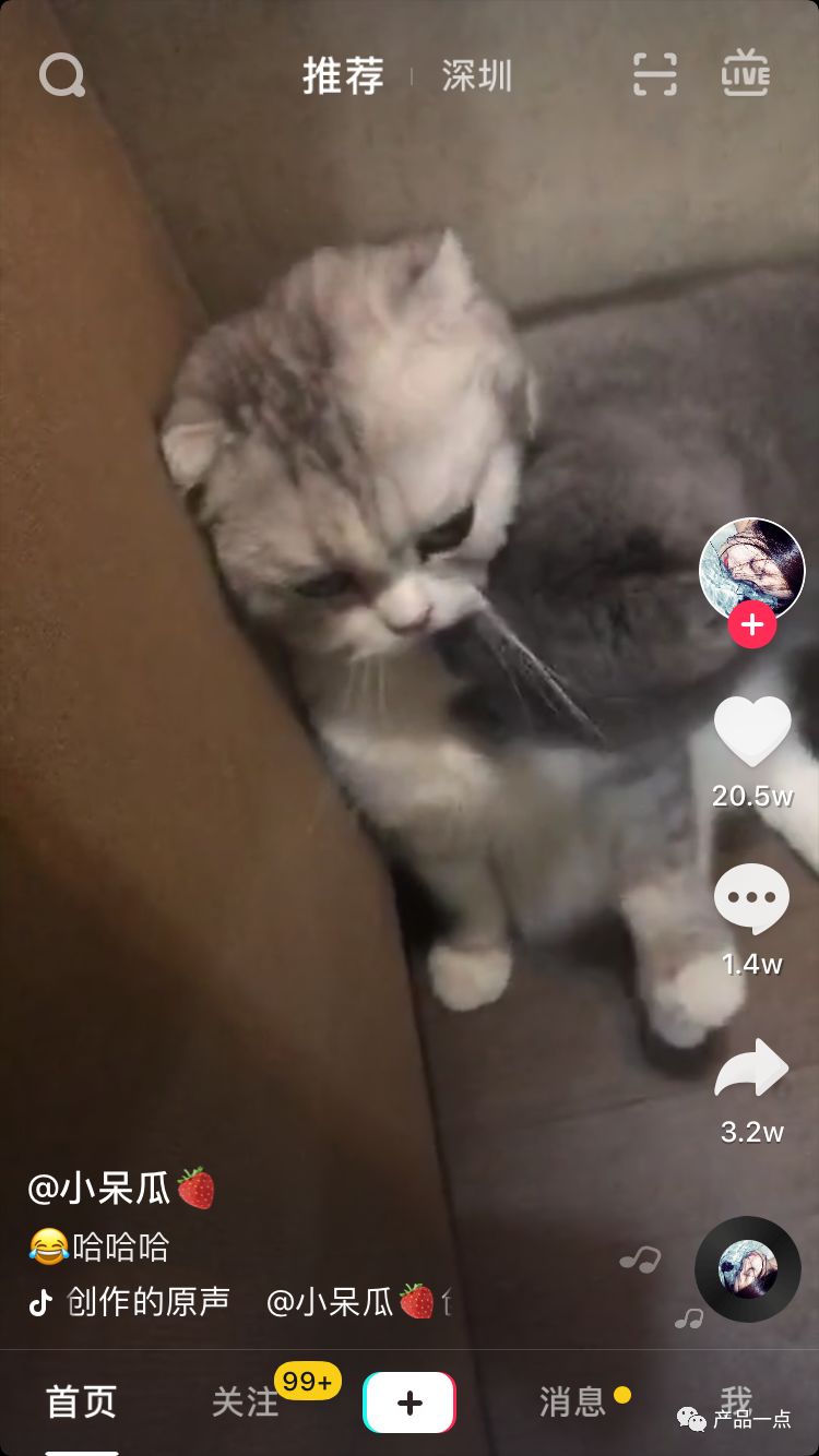 场景:用户打开应用户,直接看到推荐内容,同时提供非常简单的操作,降低用户对视频反馈成本,同时降低用户注意力分散,让用户打开后不用选择,直接看到内容,提升沉浸式体验,这里推荐也从多个角度进行推荐,地理位置(可能通过地理标签形式实现,如喜欢过的一个视频具有典型的地区特征,那么会推送和该地区相关的其他内容),兴趣点(如点赞,分享等),热点内容(火爆)等等