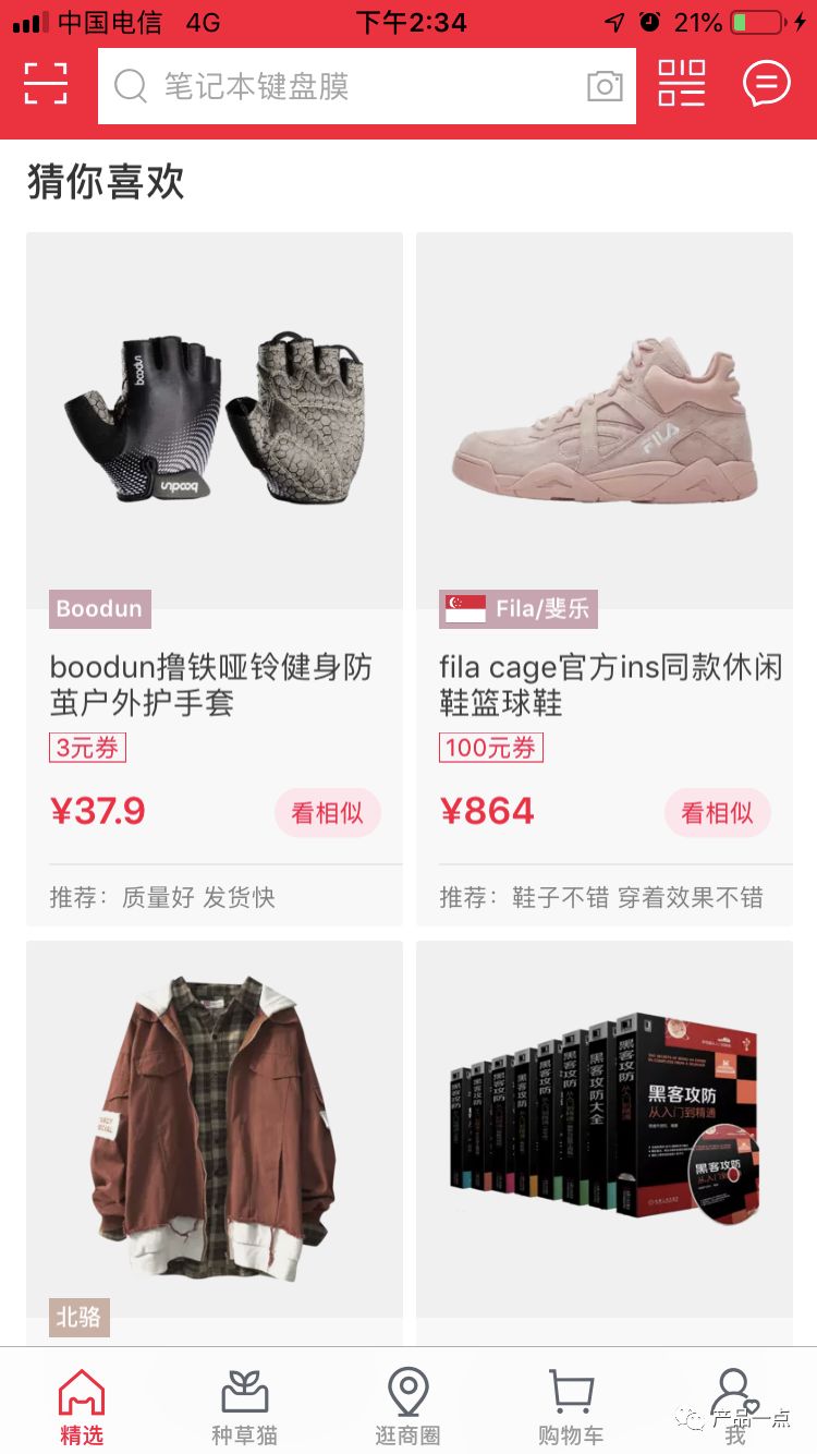 (1)购物类app:首页底部“为您推荐/猜您喜欢”