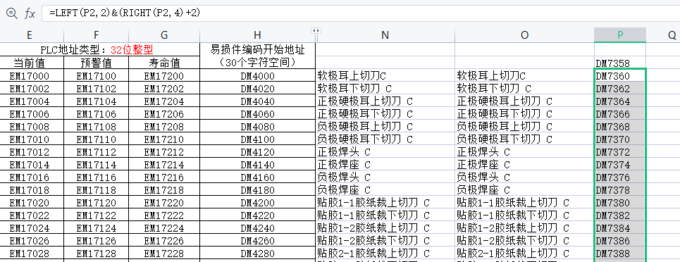 上位机DM地址使用EXCEL中Left和Right涵数快速配置