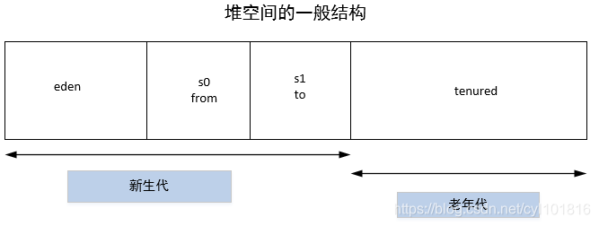 根据java回收机制的不同,java堆有可能拥有不同的结构。最为常见的一种构成是将整个java堆分为新生代和老年代。其中新生代存放新生对象或者年龄不大的对象,老年代则存放老年对象。新生代有可能分为eden区、s0区、s1区,s0区和s1区也被称为from和to区,他们是两块大小相同、可以互换角色的内存空间。