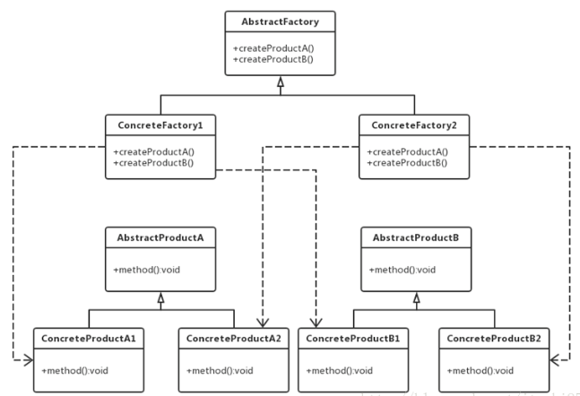 AbstractFactory:抽象工厂,它声明了用来创建不同产品的方法。