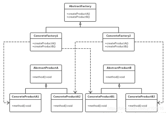 AbstractProduct:抽象产品,为每种产品声明业务方法。比如上图的AbstractProductA和 AbstractProductB。