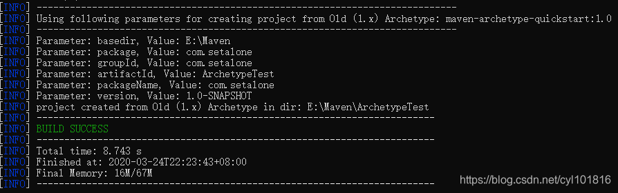 命令执行完成后打印日志在控制台,如图所示的地址是在本地仓库中生成xml文件的地址