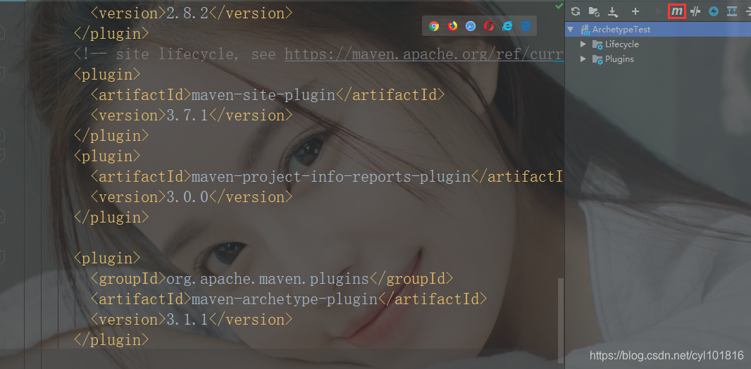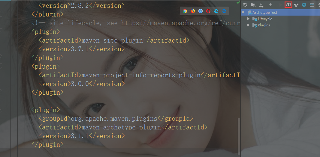 在创建好的项目ArchetypeTest的pom文件中添加标签: