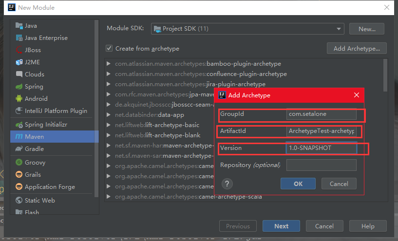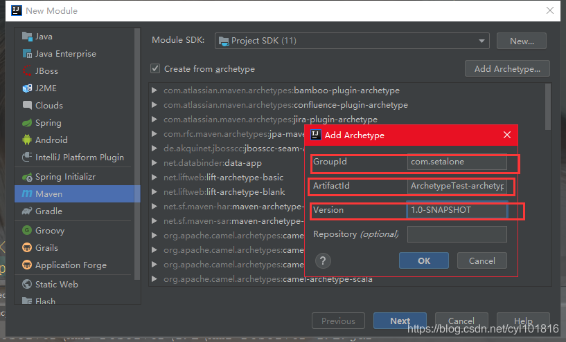 重新创建一个maven项目的时候选择Add Archetype,依次填入Groupld,ArtifactId,Version。