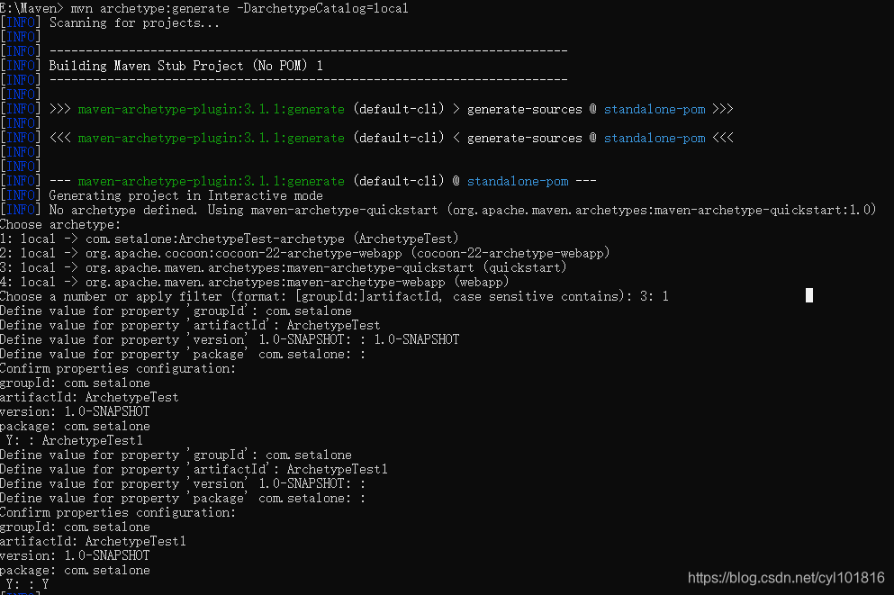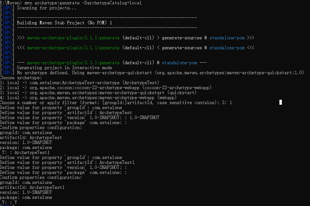 执行mvn archetype:generate -DarchetypeCatalog=local从本地archeType模板中创建项目。
