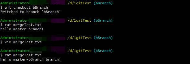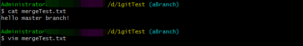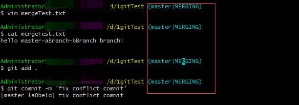 注:简单方法,使用vim修改,cat查看冲突文件。(注意要删除git自动生成的冲突代码分隔符)