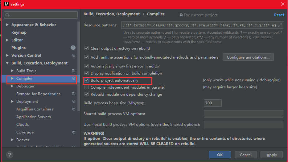 ctrl + alt + s 快速打开Settings,Compiler-Build Project automatically