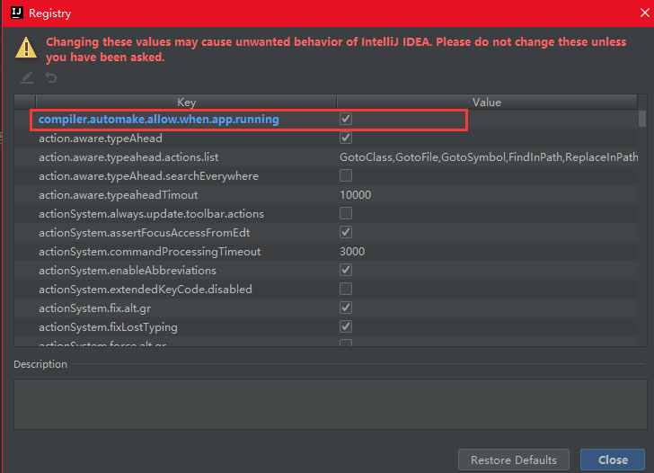 ctrl + shift + alt + / ,选择Registry,勾上 Compiler autoMake allow when app running