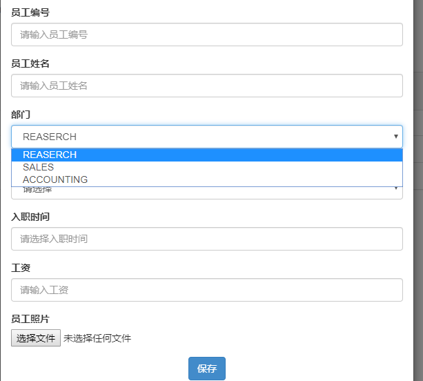 当我们新添加一个员工的信息的时候,就需要从前台的表单获取表单中的数据,