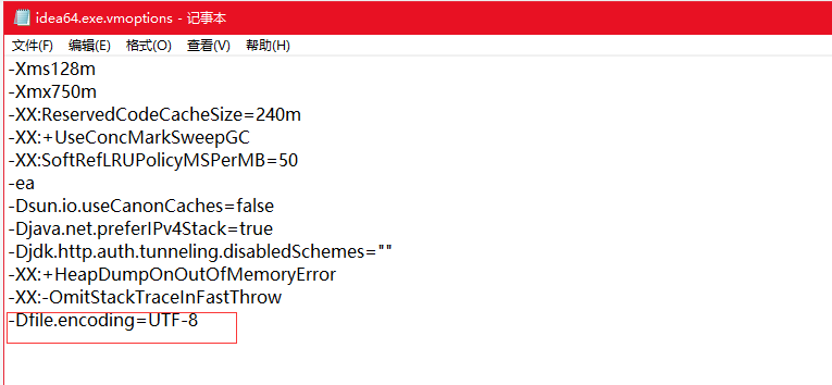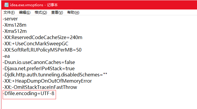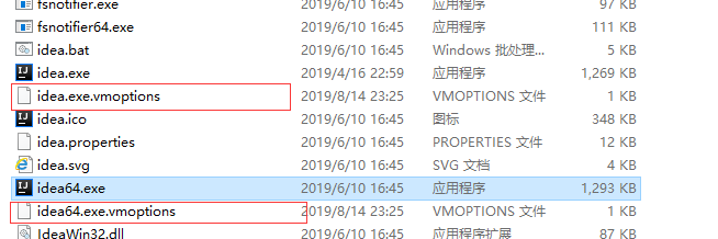 3、打开idea安装目录-bin,用记事本打开idea.exe.vmoptions文件和idea64.exe.vmoptions文件,分别在文件的最后添加: