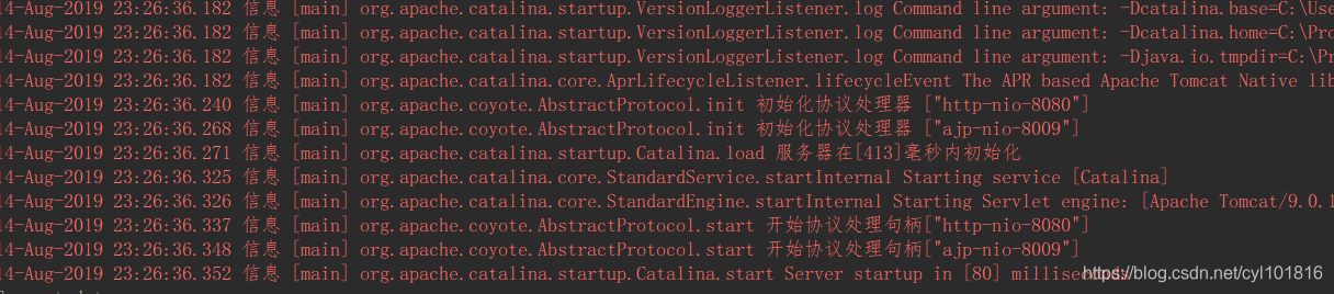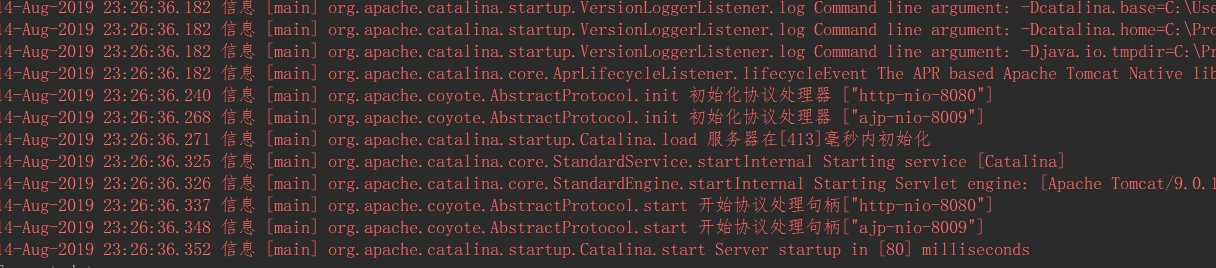 4、重新启动IDEA,启动项目后日志即可正常显示中文信息