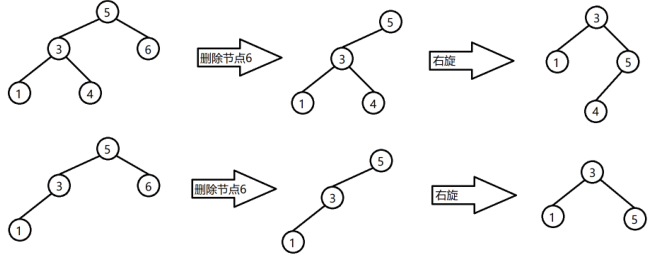 第1个右:删除节点之后,如果祖父节点的右子树深度大于左子树深度,说明问题出在祖父节点的右子树上