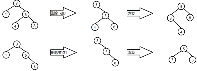 第1个左:删除节点之后,如果祖父节点的左子树深度大于右子树深度,说明问题出在祖父节点的左子树上